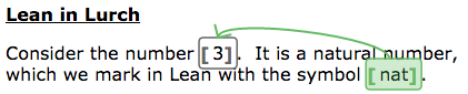 Part 2 ended by pointing out that the UI could be better if the common syntactic form a : A in Lean were supported in this app. This page of the tutorial introduces how it's supported.